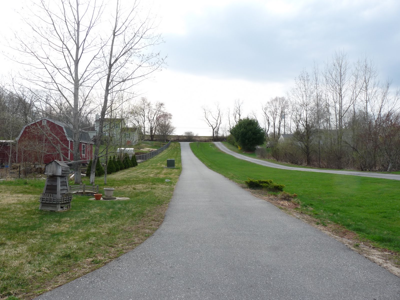 这条长长的路,其实是我们的私人地段。于是,孩子每天必须步行到尽头的大路旁,去等候校车。